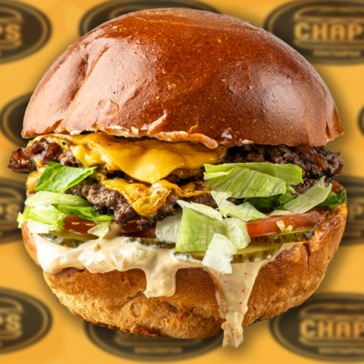 Tą pozycję musisz spróbować! Maślana buła, smashowane mięso wołowe 2x100g, ser cheddar,ogórek kiszony, biała cebulka pokrojona w kostkę, pomidor, sałata lodowa, autorski sos burgerowy